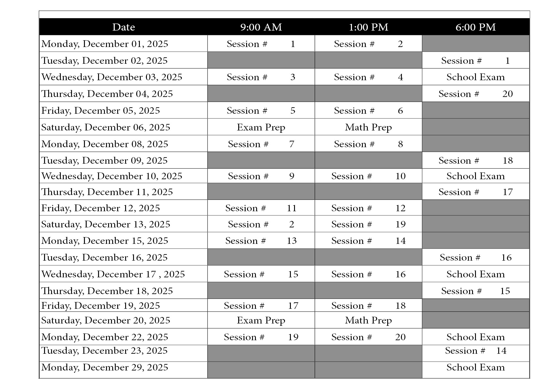 Day Classes (Mon, Wed, Fri 9:00 AM and 1:00 pm) Beginning Monday October 6, 2025