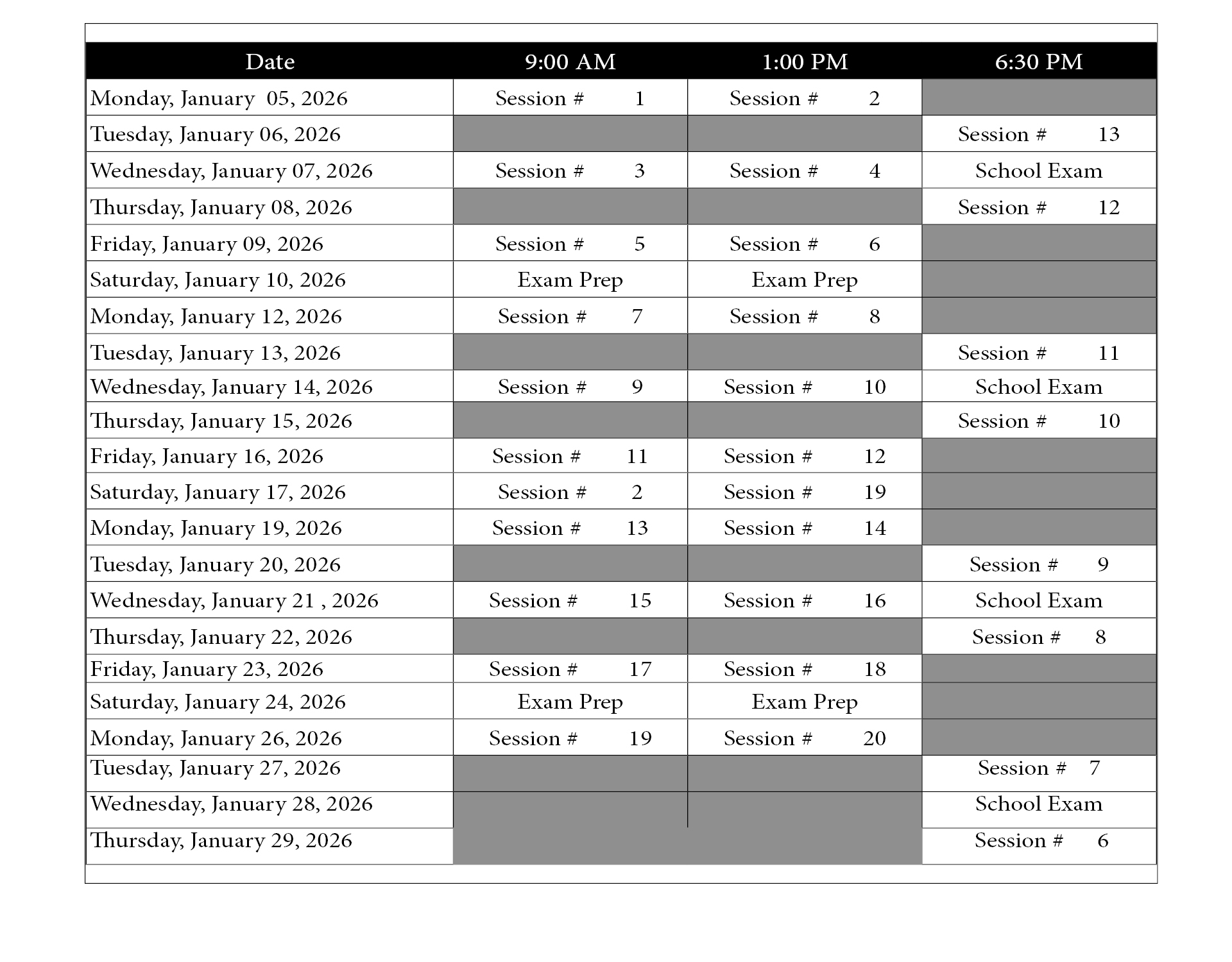 Jaunuary 2026 Salespersons Licensing Course Schedule